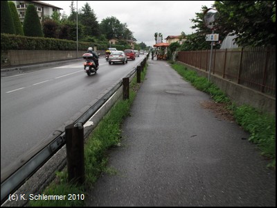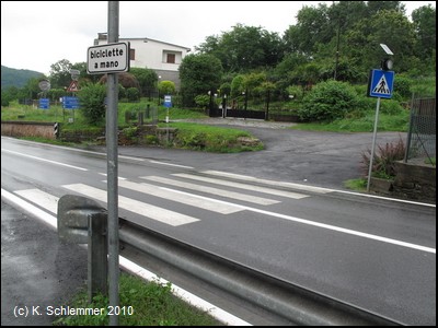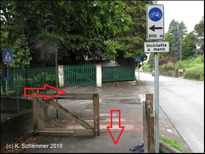 Wir erreichen die SS233 (Via Grumello), die überquert werden muss. "Radfahrer absteigen" heißt es - frei übersetzt!