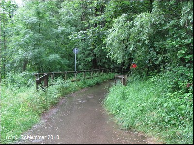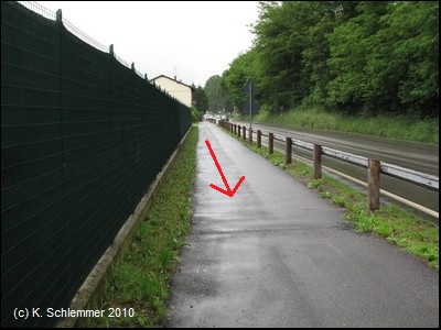 Knapp 200 m geht es durch den Ort, dann biegt man wieder auf die Trasse ab. Ein Informationsschild weist uns den Weg.