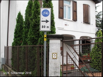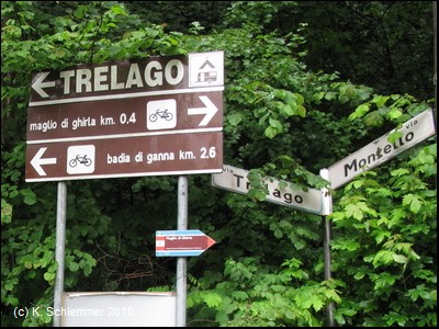Eine Beschilderung war nicht vorhanden. Man fährt etwa einen Kilometer entlang der Straße, dann führt ein Radwegeschild rechts ab Richtung Gugliate-Fabisasco. Entlang der Straße erreicht man Cunardo. Von dort wäre es ein Leichtes über die Via Raglio Richtung Ghirla zu fahren, der beschilderte Radweg macht aber eine große Schleife um Cunardo und durch die Wiesen und mündet schließlich auf die Via Varesina.