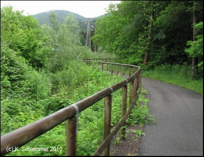 Der Radweg führt Richtung Campingplatz und dann am See entlang. Die Strecke ist gut ausgebaut, verläuft aber wohl nicht auf der Bahntrasse.