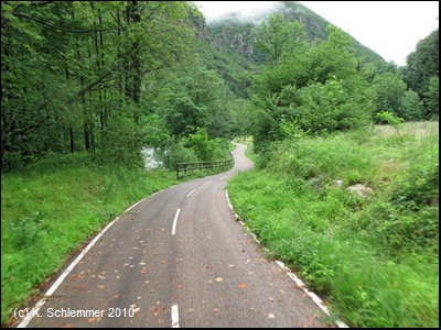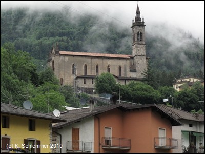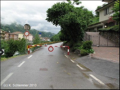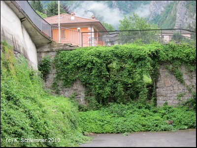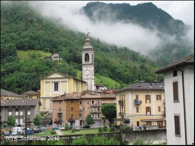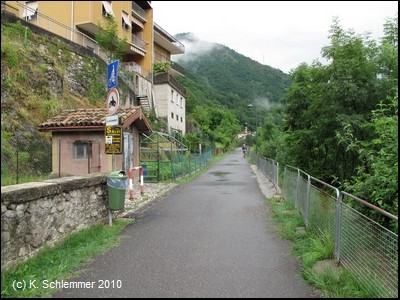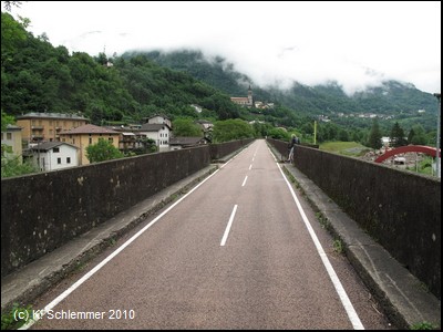 Wie durch einen Torbogen nähern wir uns dem Ort San Giovanni Bianco. Kerzengerade zieht die Trasse oberhalb der Häuser vorbei.