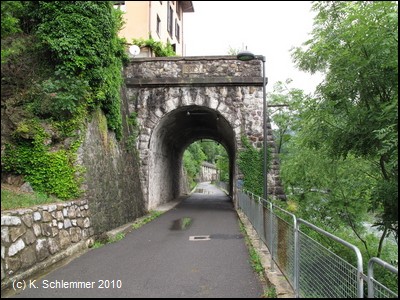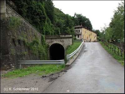 Am Tunnelausgang in Piazza Brembana endet der Radweg.