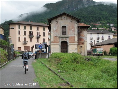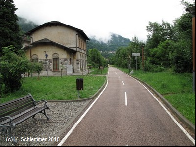 Vorbei am Bahnhof von Camerata Cornello. Der folgende Tunnel im Ort ist nicht befahrbar.