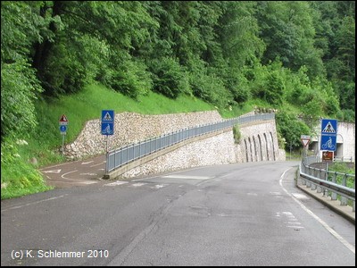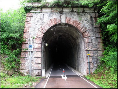 Nur ein kurzes Intermezzo. Wieder auf der Trasse folgt der nächste Tunnel: Antea, 140 m . Vorsicht vor den wohl unvermeidbaren Pfostensperren, besonders bei der Talfahrt! Und schon der nächste Tunnel, nur 82 m lang.