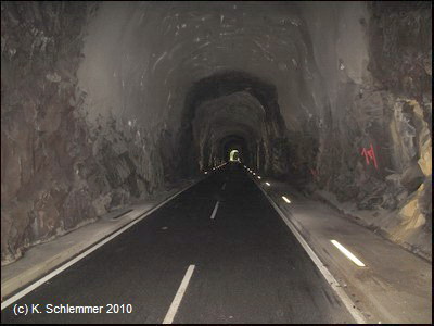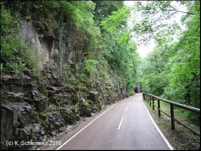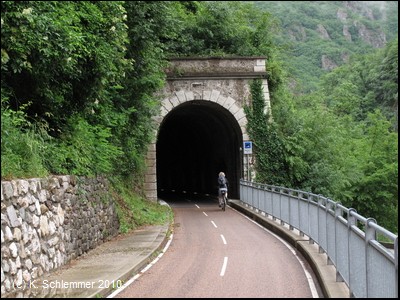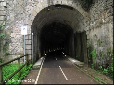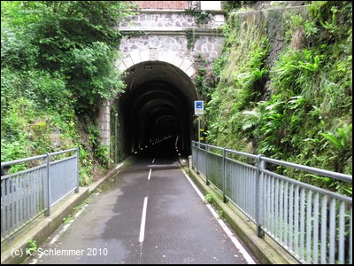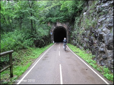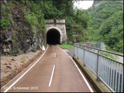 Man passiert einen felsigen Abschnitt des Radwegs, und schon folgt die nächste "Röhre"