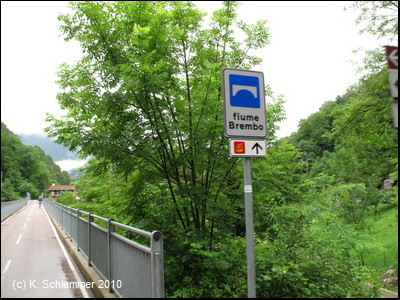 Der kleine mittelalterliche Ort hat insgesamt sieben Brücken über die beiden Flüsse. Wir verlassen den Ort und folgen dem Fiume (Fluss) Brembo talaufwärts