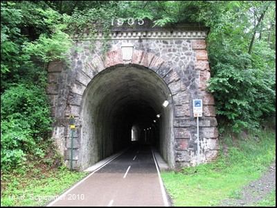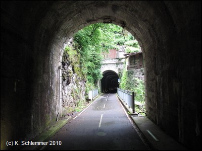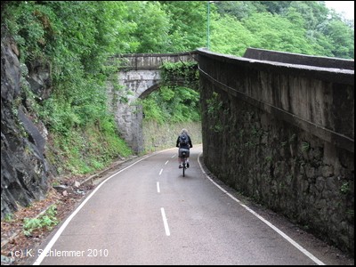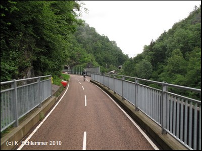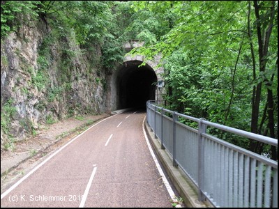 Ein wildromatischer Abschnitt des Radwegs! Es folgt der längste Tunnel des Radwegs, 313 m lang.