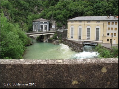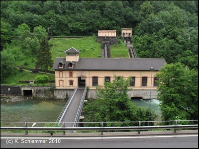 Das alte Kraftwerk im Tal war für die Stromversorgung der Bahnstrecke zuständig.