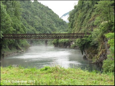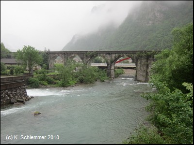Dann ein langes Viadukt über den Fluss Brembo.
