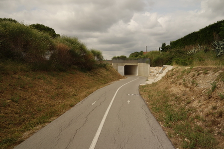 Fast unmerklich ist der 1. Scheitelpunkt der Strecke überschritten. Es geht nun bergab und vor Calvisson unter der D40 hindurch.