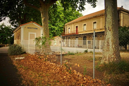 Der Bahnhof der stillgelegten Strecke nach Nîmes liegt etwas außerhalb des Kernstadt, hier befindet sich ein großer Parkplatz für die Besucher. Von hier aus führt die asphaltierte Strecke auf der ehemaligen Bahntrasse durch die südliche Landschaft in westlicher Richtung bis nach Caveirac, einem verschlafenen Ort ca. 9 km von der Großstadt Nîmes entfernt. Die frühere Bahnlinie führte weiter bis nach St. Césaire-les-Nimes (ca. 6 km), das inzwischen ein Stadtteil von Nîmes ist.