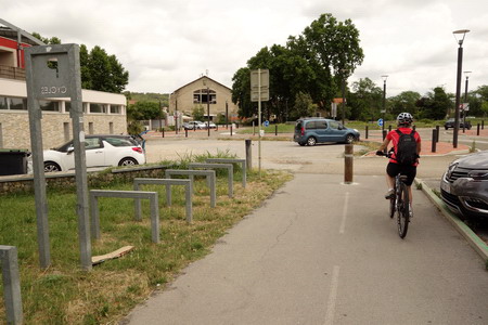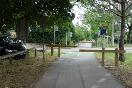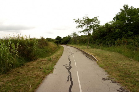 Im folgenden Abschnitt ist die Fahrbahn durch die Wurzeln von Bäumen aufgeworfen: Sturzgefahr! Nächste Station ist Saint Dionisy.
