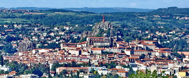 Blick zurück: Tief im Tal liegt die Stadt Le Puy-en-Velay.