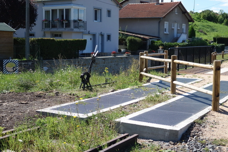Vor dem Bahnhof Brives-Charensac endet der Asphaltbelag. Eine alte Weiche ist stehengeblieben.