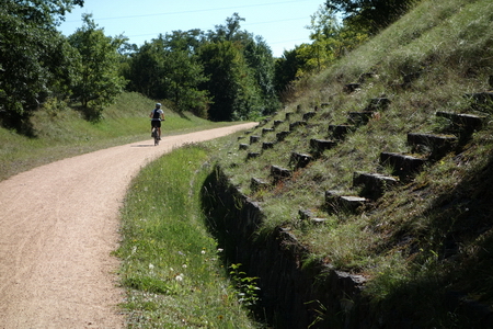 Der Radweg steigt nun merklich an, schon kann man die Aussicht ins Tal der Loire genießen.
