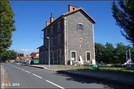 Die D38 wird überquert, abseits des Radwegs an der Straße durch den Ort befindet sich der ehemalige Bahnhof Coubon - Volhac. Der Radweg führt an der Stützmauer entlang.