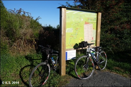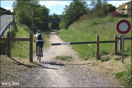 Der neue Abschnitt des Radwegs beginnt an der Rue Genebret, auf einem kleinen Parkplatz kann man auch ggf. das Auto abstellen. Der Einschnitt in entgegengesetzter Richtung zum Bahnhof Le Puy und der Bahnstrecke nach St. Etienne wurde erst kürzlich zugeschüttet, im Herbst 2014 waren noch die Bagger am Werk. Le Puy-en-Velay ist nur zwei Kilometer entfernt. Der erste, kurze Abschnitt des Radwegs im Bereich Brives-Charensac ist asphaltiert.