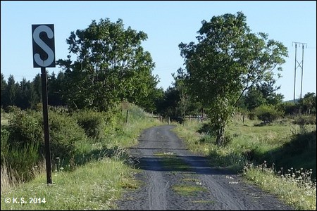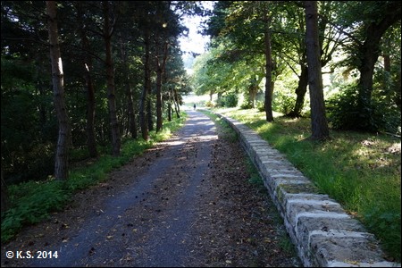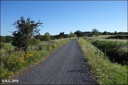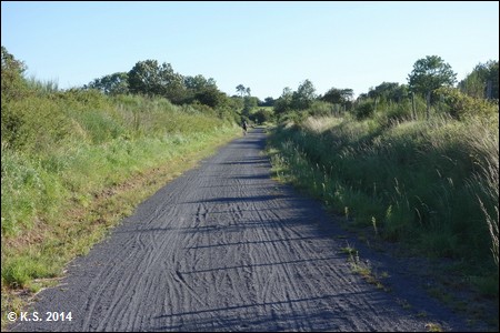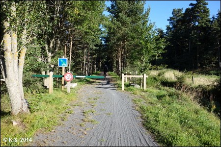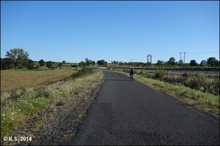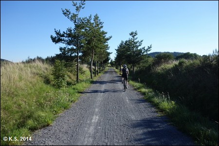 Vorbei an einem weiteren Streckenhäuschen geht es auf den zweiten Abschnitt des Radwegs. Der Abschnitt durch die Hochebene hat eine Fahrbahn aus losem Splitt.