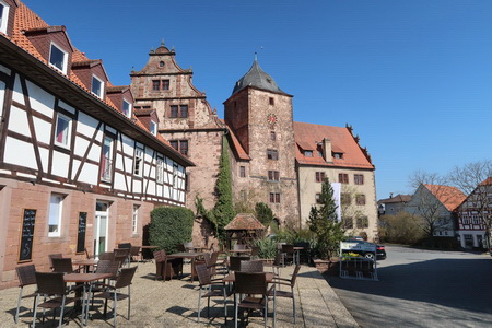 Der Radweg folgt dem Flüsschen Schlitz, aber ein Besuch der Altstadt mit den fünf Burgen kann nicht schaden. Der Radweg auf der Bahntrasse ist im Stadtbereich leider unterbrochen, die Wegweisung führt durch den Schlosspark zum Schwimmbad. Dort trifft man wieder auf die alte Bahntrasse. Im Schloss Hallenburg ist die Landesmusikakademie Hessen untergebracht.