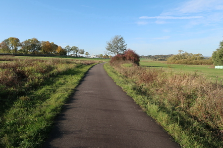Vorbei am Rastplatz und der Schutzhütte zieht die Strecke kerzengerade weiter durch die Auen. Die Landstraße wird überquert (Vorsicht!), an den kleineren Querstraßen gibt es keine Barrieren. An diesen wenig befahrenen Straßen hätte man auch einmal dem Radweg die Vorfahrt einräumen können.