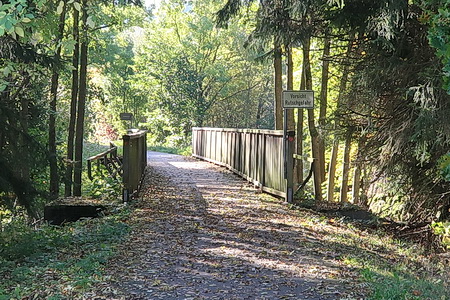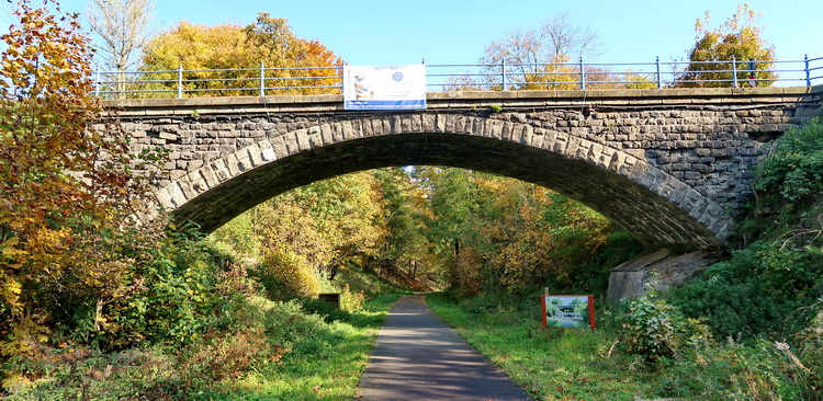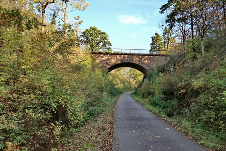 Vor Hartmannshain überspannt noch eine historische Brücke den Radweg. Sie war vom Abriss bedroht, doch durch die Initiative und den Einsatz der Bürger sollte der Erhalt und die Sanierung der Hartmannshainer Brücke bis Ende 2019 abgeschlossen sein.