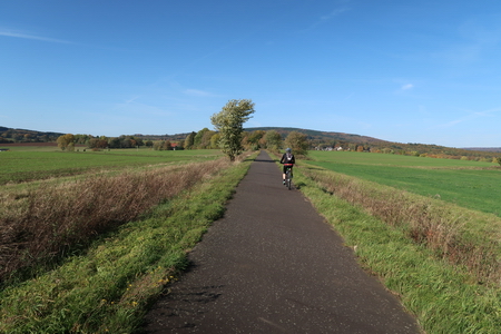 Am Wasserwerk verschwenkt der Radweg auf die Trasse. Nun folgt ein schöner Abschnitt weit weg vom Autoverkehr durch die Auen der Schlitz, einem Nebenfluss der Fulda.
