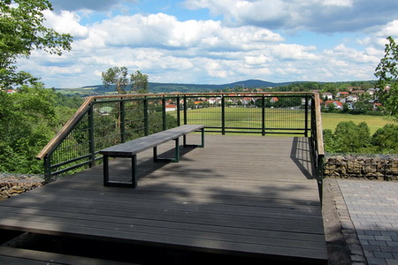 An einem Felshang entlang geht es Richtung Blitzenrod. Von der Aussichtplattform hat man noch einmal einen schönen Ausblick ins Tal.