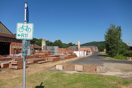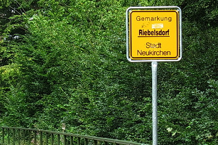 Vor dem Bahnhofsgelände Neukirchen beginnt die 700 m kurze Umfahrung auf einer Fahrradstraße. Vorsicht, motorisierter Verkehr! Der Bahnhof Neukirchen und das Umfeld sind Privatbesitz.