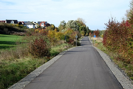 An der nächsten Straßenkreuzung wird der Ortsrand von Treysa erreicht. Dichte Vegetation begleitet die Trasse in einer Linkskurve Richtung Bahnhof. Nach einer kleinen Brücke endet der Radwegs am Parkplatz Haaßehügel.