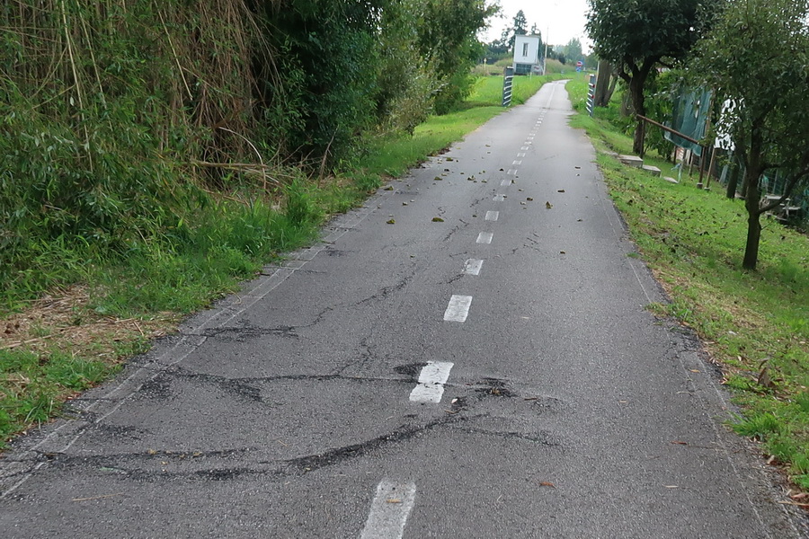 Abzweig des neuen Radwegs in den Ort Belvedere.