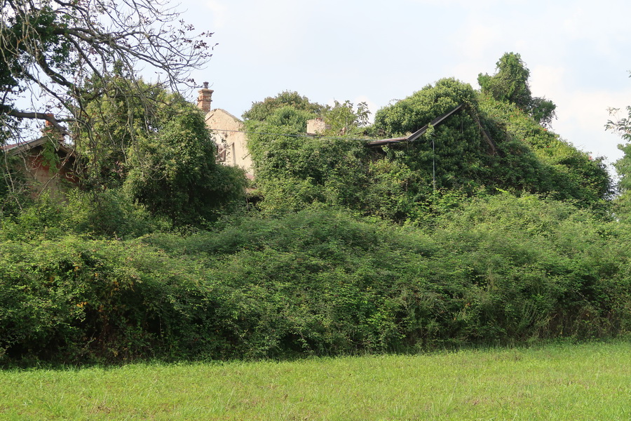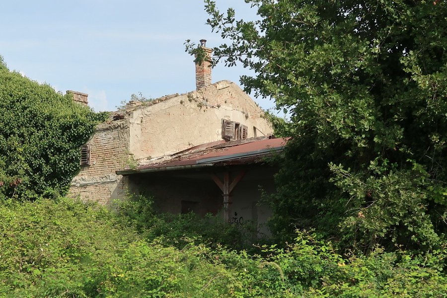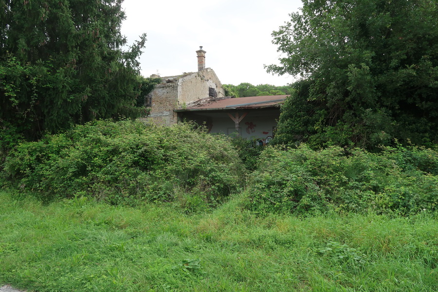 Vorbei am alten Bahnhof Belvedere, die Ruine versinkt hinter der Vegetation.