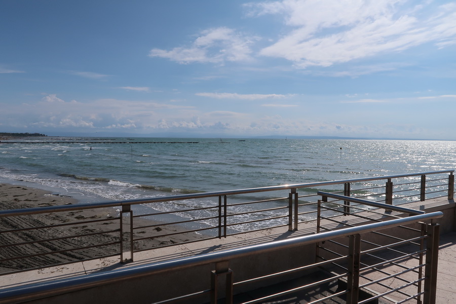 Über den Damm radelt man sicher nach Grado und zu den Stränden des Mittelmeers. Auch wenn die jährliche Algenplage zu Badeverboten führen kann, lohnt eine Rast etwas außerhalb des Hauptrummels z.B. am Strand von Grado-Pineta.
