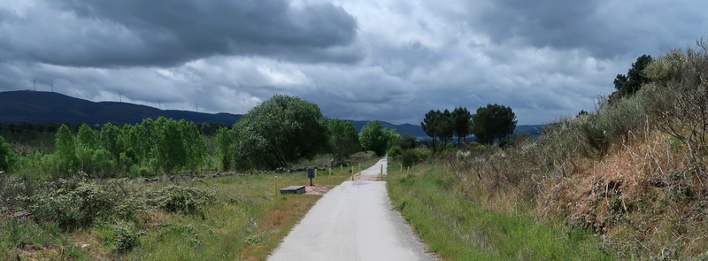 Die Trasse schneidet sich durch die Felsen. Bei Fortunho geht es kurz an der Straße entlang, die Autobahn wird zweimal unterquert.