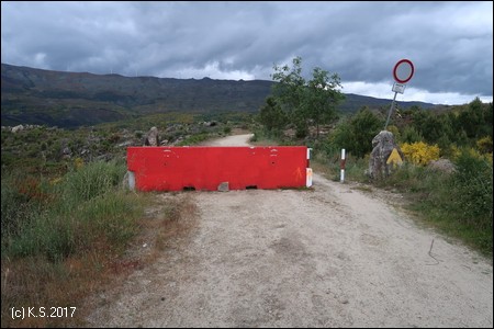 Weiter hinauf in die Berge, eine lange Gerade liegt hinter uns. Wir erreichen die Kreisgrenze nach Vila Pouca de Aguiar (Blick zurück).