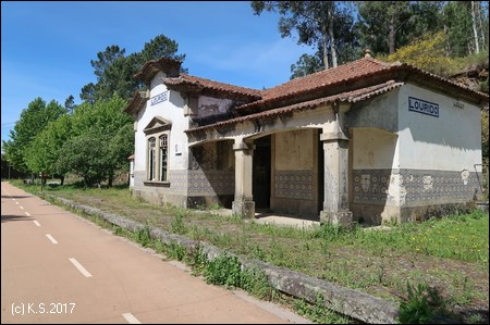 Fast eben mit nur leichten "Schwankungen" verläuft die Fahrt in einer Höhe von ca. 200 m ü.NN. Der Bahnhof von Lourido ähnelt den vorigen: architektonisch schöne Gebäude mit Azulejos verziert - aber verlassen und leer. Der Ort Lourido besteht nur aus wenigen Häusern und liegt etwas abseits des Bahnhofs.