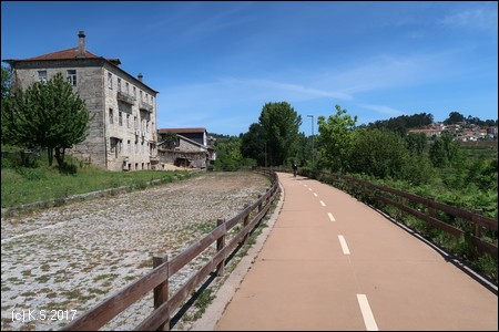 Der Radweg überquert nun das Viadukt Ponte de Matamá, eine der größten Granitsteinbrücken in Europa: 190 m lang, 52 m hoch. Nur ein kleiner (namenloser?) Bach fließt durch den riesigen Hauptbogen.