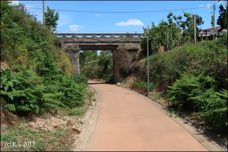 Genau bei Bahnkilometer 20,317 ! Das Viadukt "Santa Natália". 87,4 m lang, 3 Bögen aus Granit.