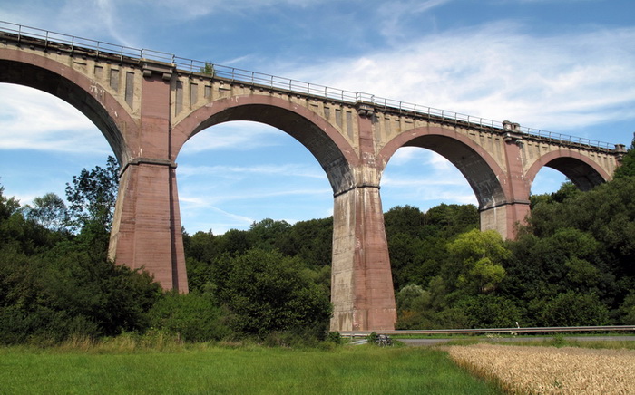 Das Viadukt von Buhlen ist nicht Teil des Radwegs. Das mächtige Bauwerk hat wohl schon sehr gelitten.