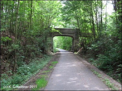 Noch ein kurzes Stück bergab, dann führt die Trasse wieder leicht aufwärts nach Höringhausen. Die Gestaltung der kleinen Brücken ist sehr schön gelungen!