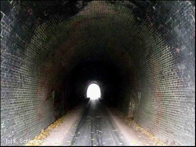 Das Westportal, schön renoviert. Immer noch aufwärts führt die Trasse.