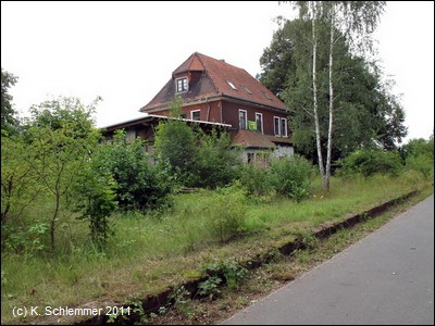 Zufahrt zum Radweg (Blick zurück) Der Bahnhof Buhlen ist Privathaus.