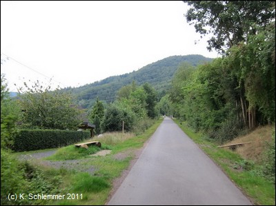 Die alten Kilometersteine haben Schieflage - schade, dass man sie nicht restauriert hat! Vor Selbach folgt noch eine Brücke im typischen Baustil dieser Strecke.
