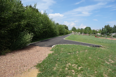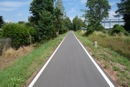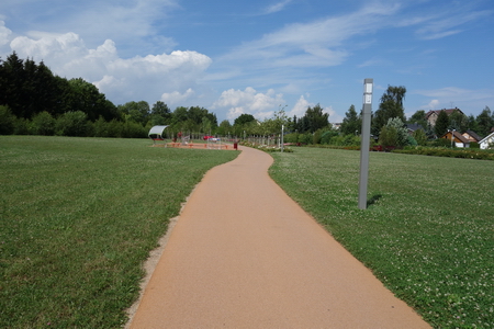Durch den Park folgt man der Trasse in nordöstlicher Richtung. Dann beginnt der Asphalt.