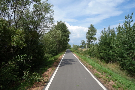Wieder auf der Strecke: An der nächsten Kreuzung gibt es keine Hindernisse. Ein schöner Abschnitt führt geradewegs durch eine "Allee".