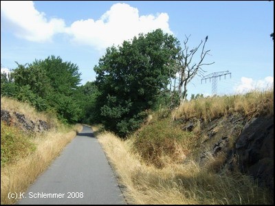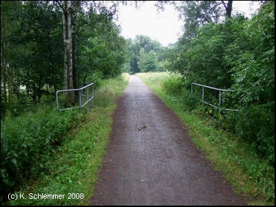 Der Verlauf der Bahnlinie ist von hieraus noch gut zu erkennen