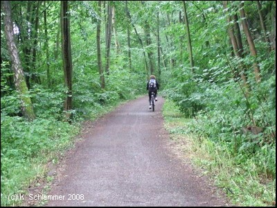 Dann geht es durch den Wald. Wir sind auf dem Muldental-Radweg