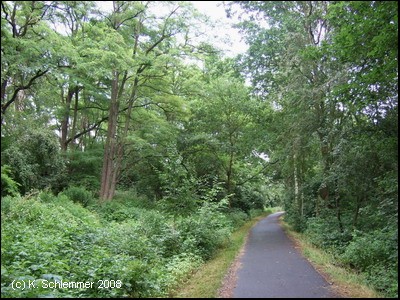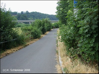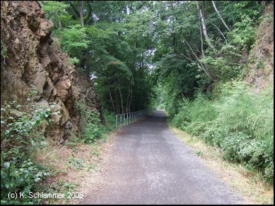Der Grund für das abrupte Ende des Bahntrassenausbaus ist wohl das Naturschutzgebiet Wachtelberg-Mühlbachtal. Hier ist sogar das Schieben von Fahrrädern verboten!