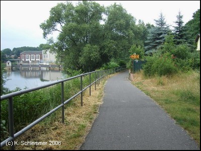 Die Pöppelmann-Brücke war im Sommer 2008 noch nicht wieder aufgebaut. Bald soll hier ein Übergang für Radler und Fußgänger wieder möglich werden.