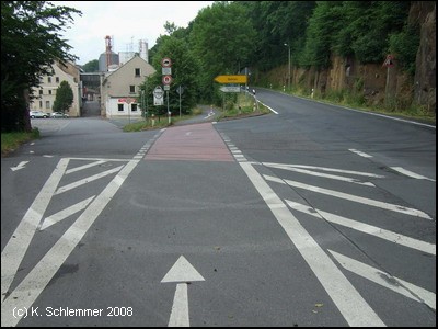 Straßenkreuzung vor Dorna, auch hier schon ohne Pfosten!