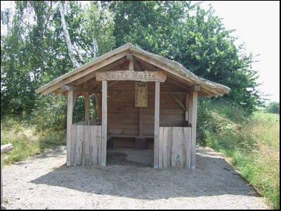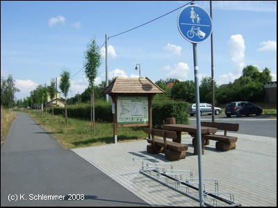 Rastplatz am Bahnhof Neichen: hier ist der Anschluss an die Mulde-Elbe-Radroute möglich. (Dieser Weg folgt teilweise der ehemaligen Bahnstrecke Neichen-Mügeln-Oschatz.)